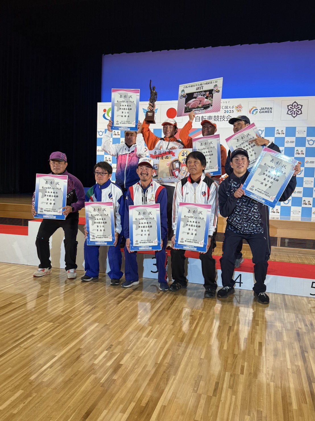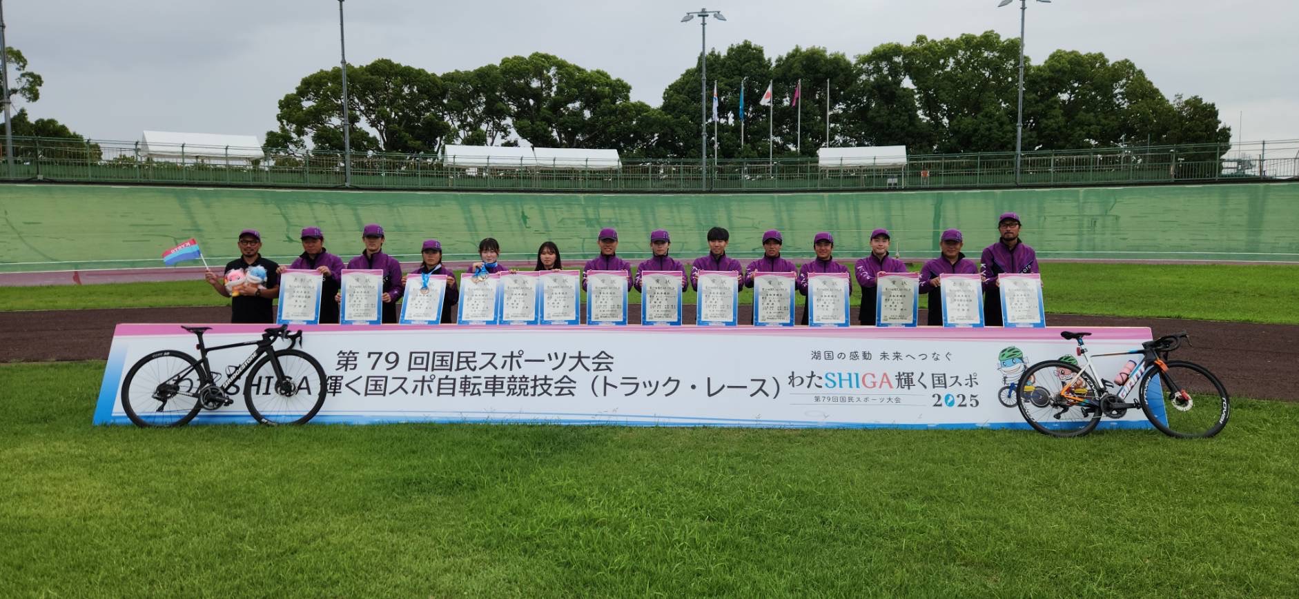 これまで長年にわたり大会や練習で使用してきた京都向日町競輪場で開催された滋賀国スポですが、地元という事もあり京都府知事はじめ多くの関係者からご声援をいただき好成績を収めることができました。本当にありがとうございました。今の400mバンクはなくなりますが約3年後には新しい333mのバンクができる予定です。その間は大会や練習など不自由がありますがチーム京都として今以上の成績を収めることができるように取り組んでいきますので今後ともご支援ご声援をよろしくお願いします。